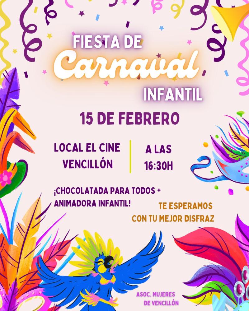Fiesta de Carnaval Infantil en el local del Cine el dia 15/02/2026 a las 16:30h.